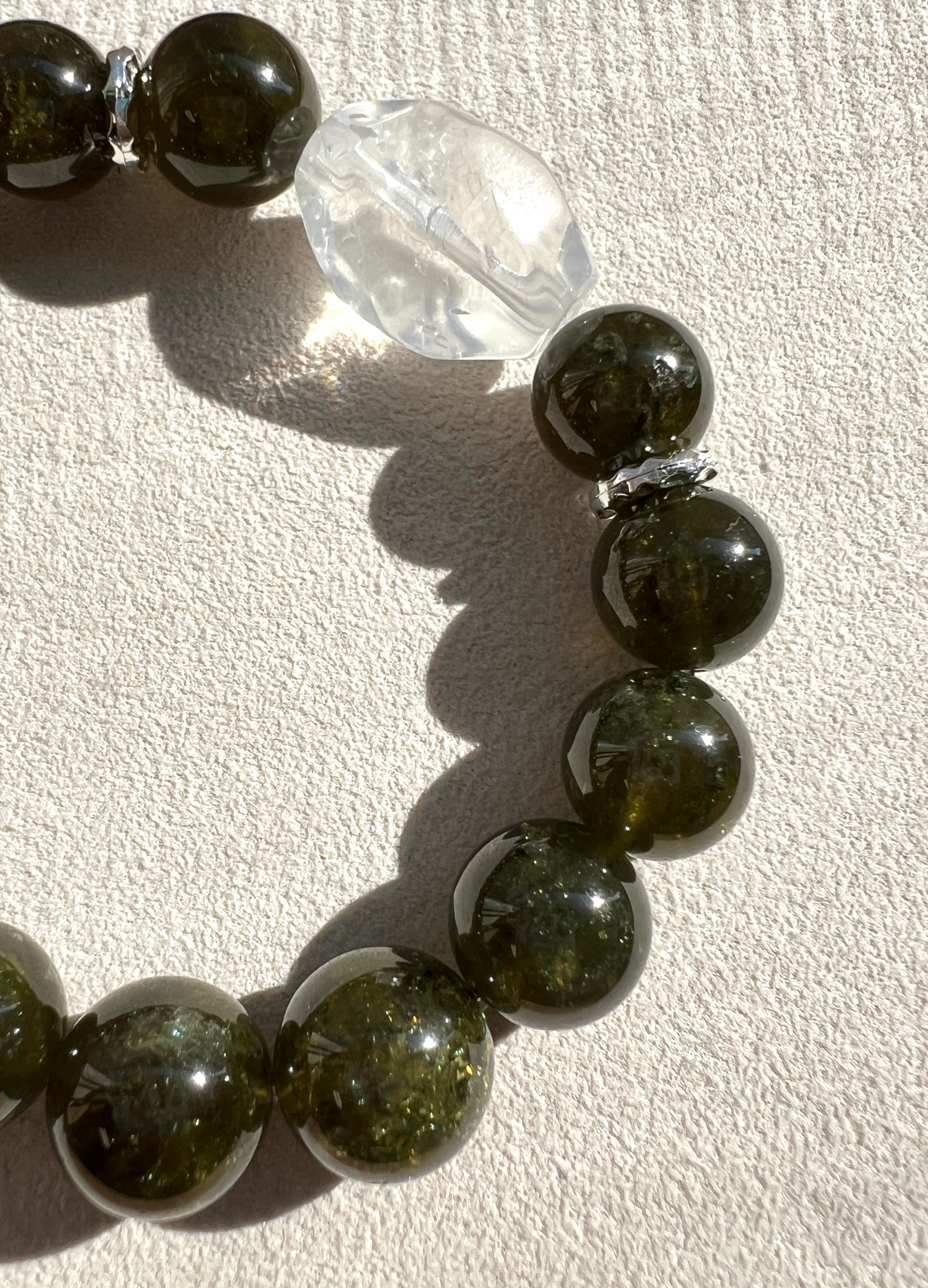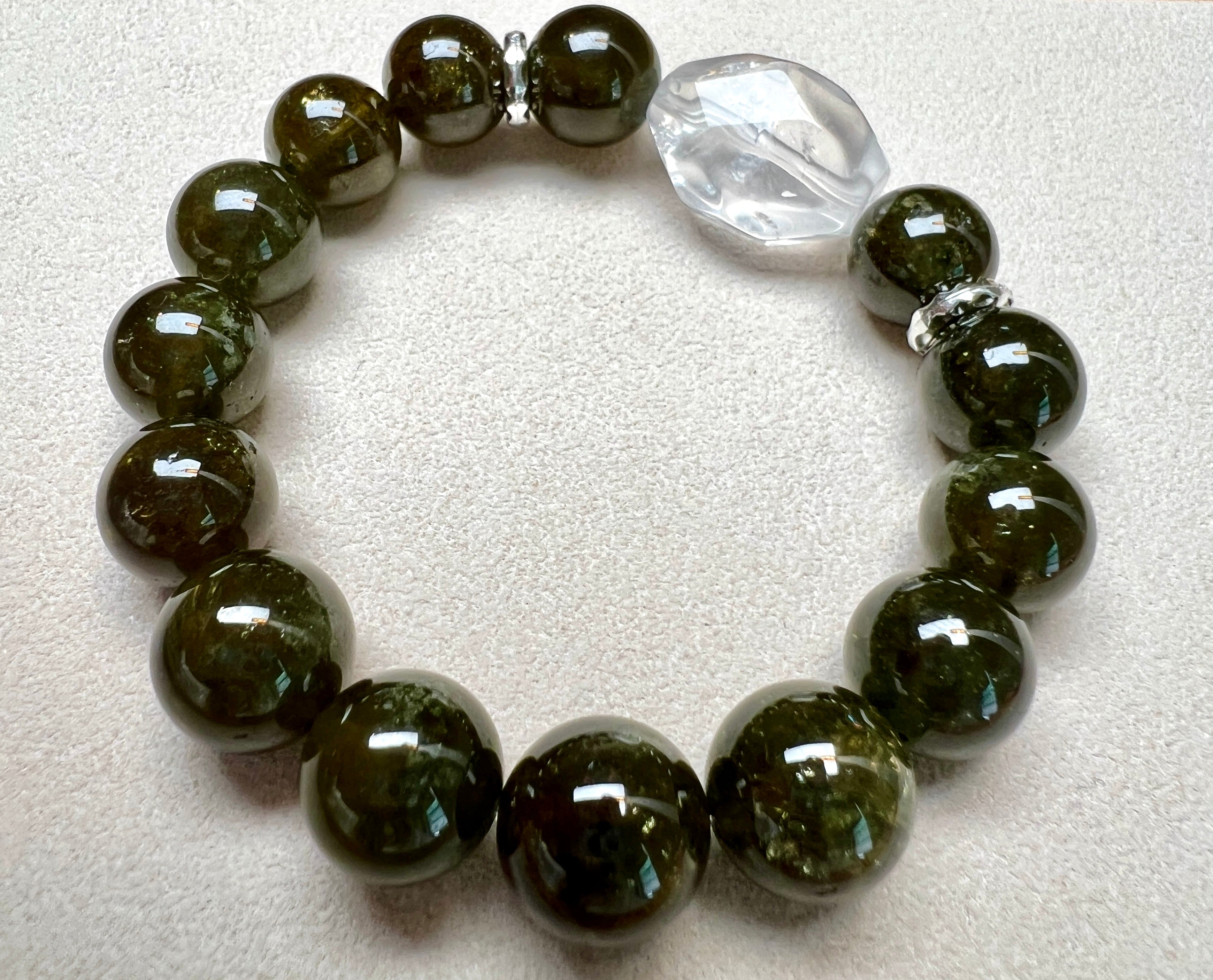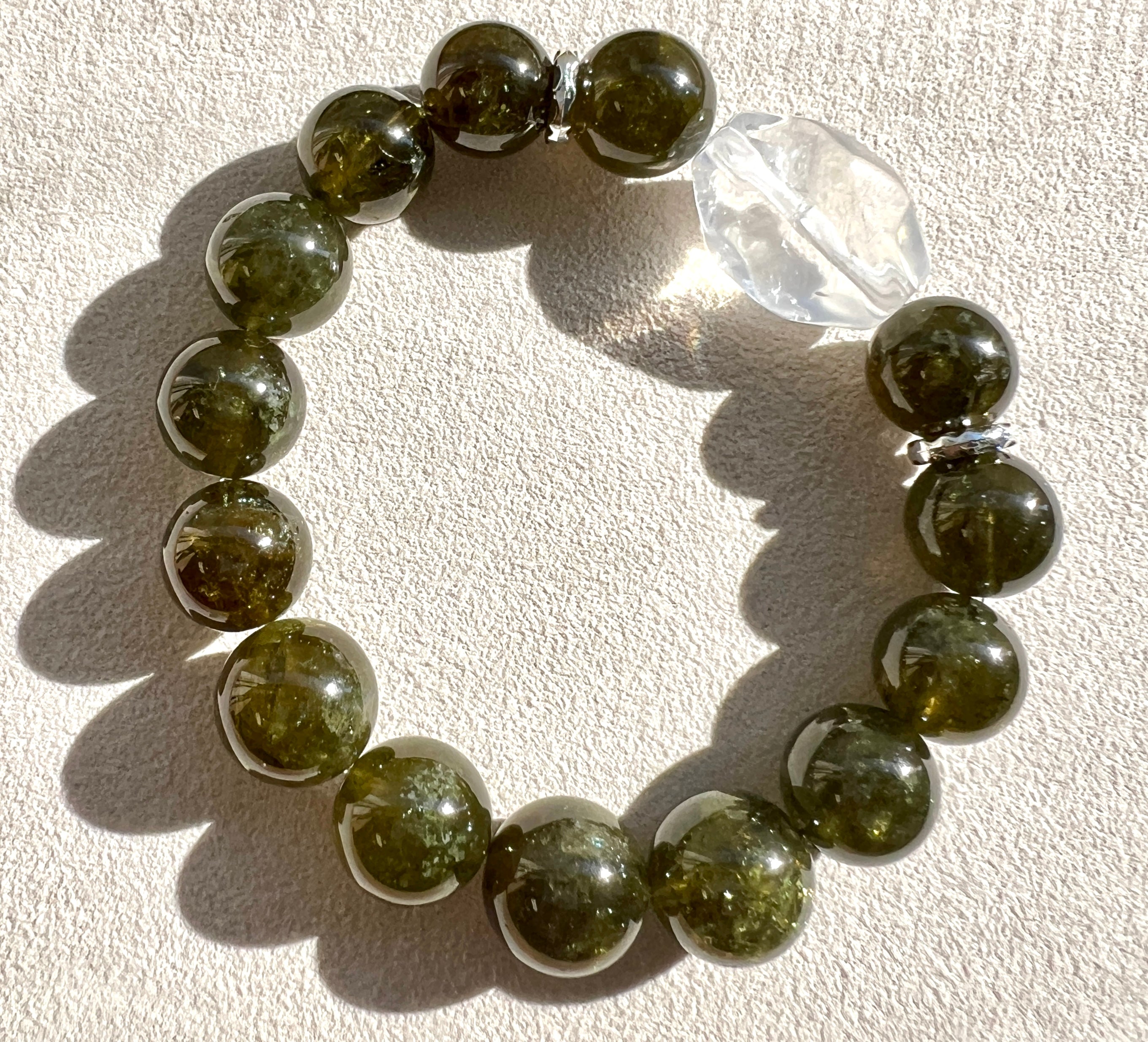 Eclipse Harmony is a unique energy duo designed to bring balance, clarity, and protection to your daily life. The Tsavorite sharpens your mind, enhances focus, and provides gentle yet powerful spiritual guidance. Paired with the mysterious Black Gold Super Seven Double Terminated, this combination absorbs negative energy, promotes inner harmony, and channels universal energy.